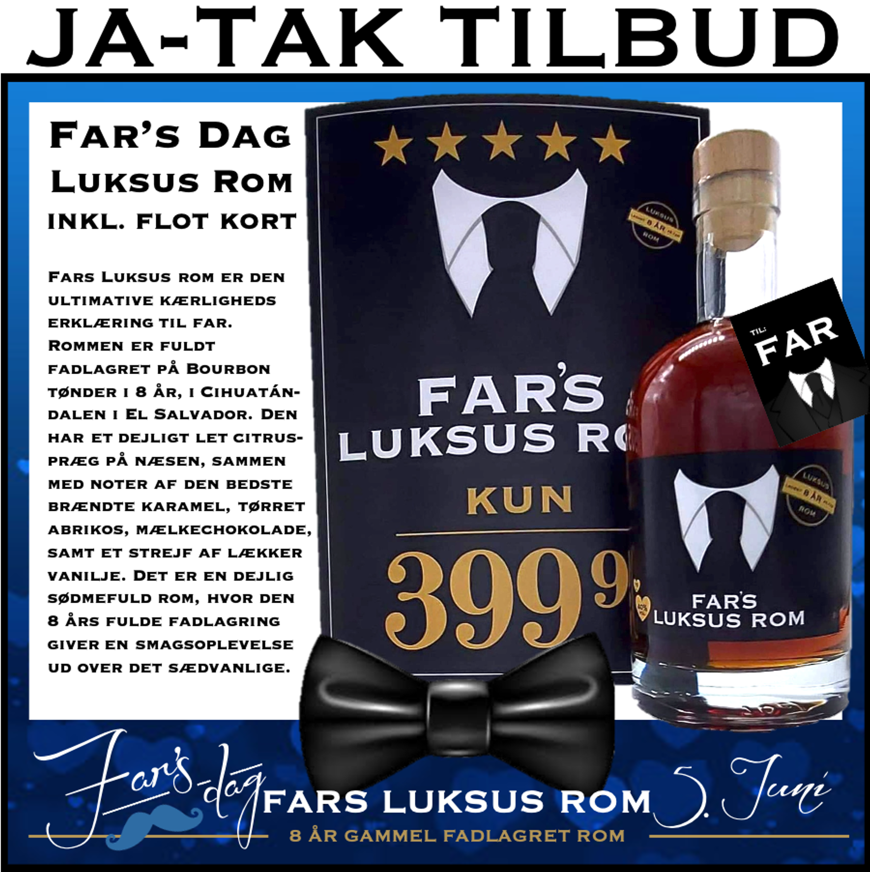 Om halsen på Luksus Rommen, hænger et flot kort hvor du kan skrive en kærlig hilsen til din Far 💙👌🏻💯