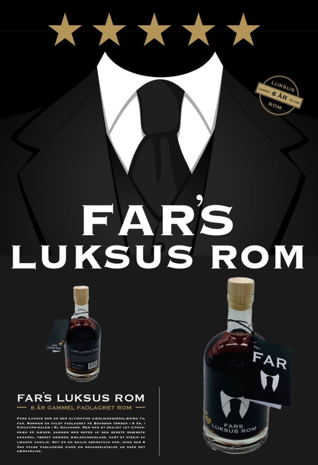 Fars Luksus rom er den ultimative kærligheds erklæring til far. Rommen er fuldt fadlagret på Bourbon tønder i 8 år, i Cihuatán-dalen i El Salvador. 😍